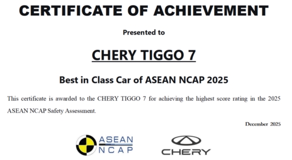 作为东盟地区权威的汽车安全评测机构,东盟新车安全评鉴协会(ASEAN NCAP)的测试体系全面覆盖正面碰撞、侧面碰撞,以及对乘员保护、行人保护等多个关键维度。瑞虎7在这一高标准体系下斩获ASEAN NCAP五星安全评级,并在年度车型评选中进一步荣获“ASEAN NCAP 2025最佳车型”,充分展现其行业领先的安全实力。同时,ASEAN NCAP官方还授予了奇瑞“东盟道路安全先锋奖”及“最佳贡献奖”,从产品到品牌,全面肯定了奇瑞在东盟地区推动道路安全的杰出贡献。